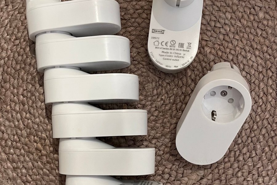 Säljes 8st IKEA TRÅDFRI smarta pluggar. Modell E1603. 220V-240Vac, 50Hz, Max 3840W 16A.