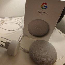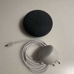 Smart högtalare som drivs av Google home appen. Den kan spela musik, svara på frågor, ställa in alarm och styra smarta hemenheter med röstkommandon. Enheten har en kompakt design och kan placeras i olika rum i hemmet. Drivs med medföljande strömkabel.