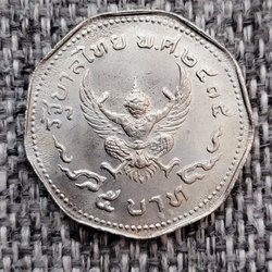 Ett thailändskt mynt från 2520 med ett värde av 1 Baht.