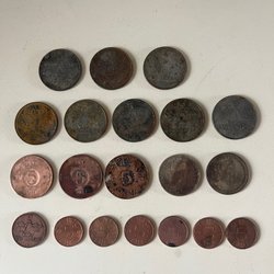 Gamla mynt mm, slitage, skador.