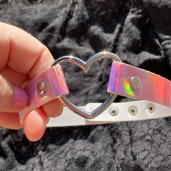Halsbandet är en choker model, som är jättefint och passar att ha på sig på nån fest.