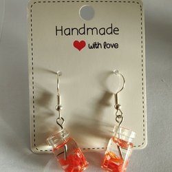 Fina handgjorda örhängen med bruna Epoxy blad (tunt plast) och en nyckel i Silver