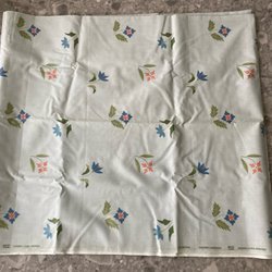 Handstickad kofta i blå,natur och ljusbruna toner.Tror att garnet är en blandning av ull,lin och bomull.