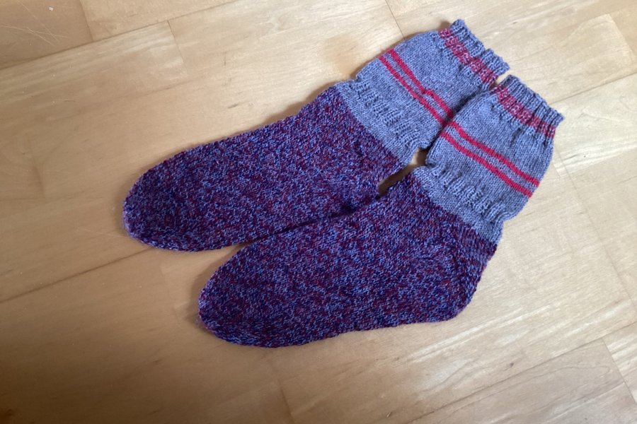 Stickade raggsockor i ullgarn.Storlek 37/38.Djur och rökfritt hem. Ansvarar ej för Postnords hantering.