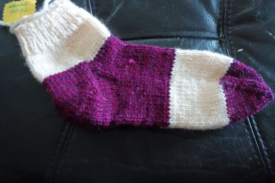 Vit, lila strumpa
