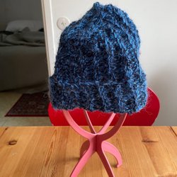 Färgglad handgjord balaclava med en unik design. Denna balaclava har en kombination av olika färger som blå, vit, gul och rosa. Perfekt för att hålla värmen under kalla dagar med stil.