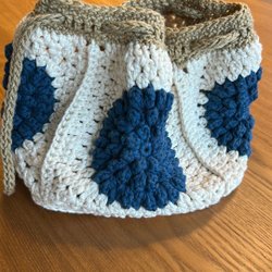 Här är en handgjord, trekantig sjal virkad i mormorsränder.