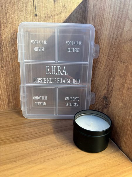 Ga jij/of ken jij iemand die binnenkort afscheid neemt? En wil jij je buren, familie, juf/meester of vrienden een kleinigheidje geven: bestel dan snel een super leuk eerste hulp bij afscheid box, E.H.B.A.