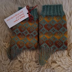 Kanten är en dubbelvikt resår som är fastsydd. Har stickat dem lite större än angivna storlekar (det som jag stickar efter), så att man kan få plats med en strumpa under utan att det blir för tight.