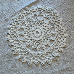 En vacker virkad duk i en varm färg. Perfekt som dekoration på bordet eller som en mysig detalj i hemmet.