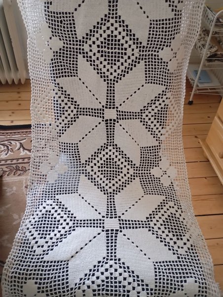 Virkad duk i vitt bomullsgarn 128x58cm