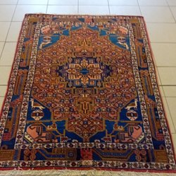 En fin handknut ullmatta med ett geometriskt mönster. Mattan har en rektangulär form och en lugg. Perfekt för att lägga till värme och stil till ditt hem.