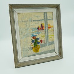 Paret vackra handBroderad tavlor i guldram- NIAB - broderi , 60 tal , retro
