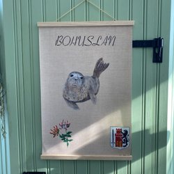 Väggbonad med motiv av landskaps djur, blomma och vapen.