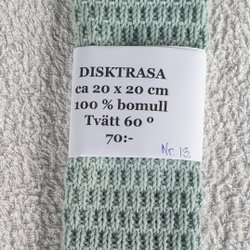 Handstickad disktrasa i 100% bomull. Kan tvättas i 60 grader. Måttet är 24 x 26 cm.