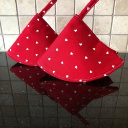 Ett par handgjorda grytlappar med mönster av röda nyckelpigor. Tyget är av linne/bomull och de är ca. 20x20cm. Jag sam fraktar och skickar så fort jag kan när jag ser att det är betalt.