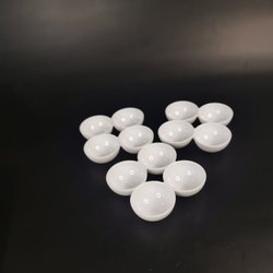 Ursöt virkad uggla med risstoppning, ljusgrå färg, cirka 10 cm hög.