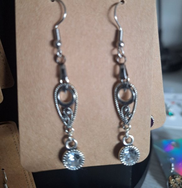 Örhänge i stål . Längd 4,5 cm bredd 0.5 cm .Medföljer stop smycke påse