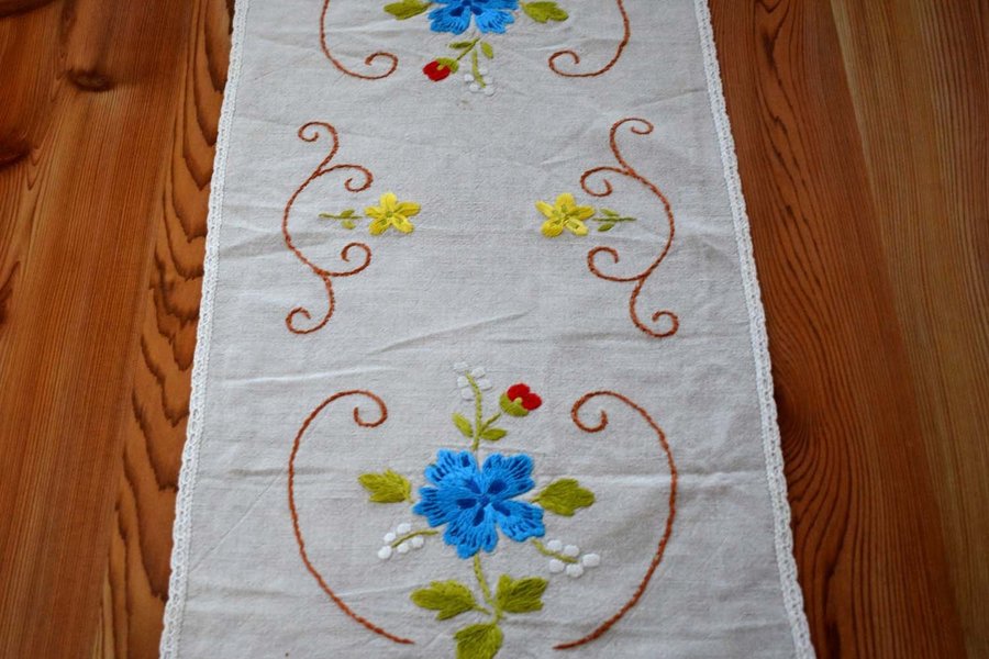 Handbroderad bomullsduk (650*290mm), i bra skick.