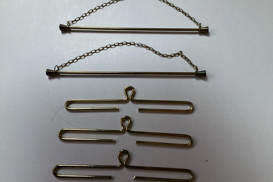 Beslag. Mått: 170 mm på de 3 nederst i bild och 200 mm de 2 övre. Säljes enligt bild.