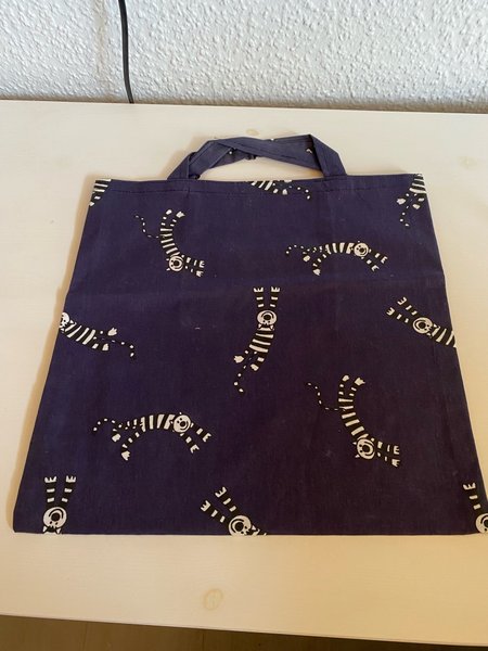 Handsydd tygkasse med liten ficka på insidan. Mått 33 cm x 31 cm.