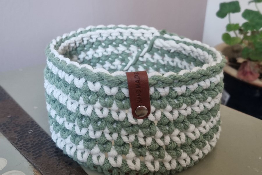 Vikad korg grön/vit