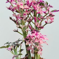 Får blomstänglar med rosa/vita blomklasar som doftar gott.