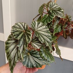 En lite ovanligare begonia med vackra vaxartade något flikiga blad som har en härligt grön färg med en röd prick i mitten. Placeras i halvskugga, ej full sol. Lättskött och lättförökad.