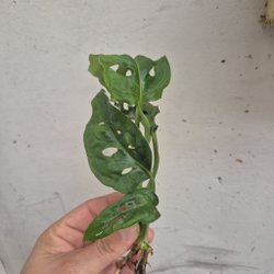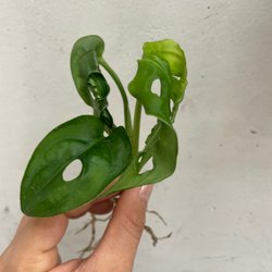 Säljer en Monstera stickling med fina rötter. Perfekt för att starta en ny planta. Den har två blad och ett nytt blad påväg.