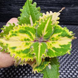 En rotad stickling av palettblad coleus LIME FRILL TRICOLOR