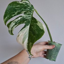 En välrotad stickling av monstera albo redo att planteras. Perfekt för att utöka din växtsamling eller som en fin present.