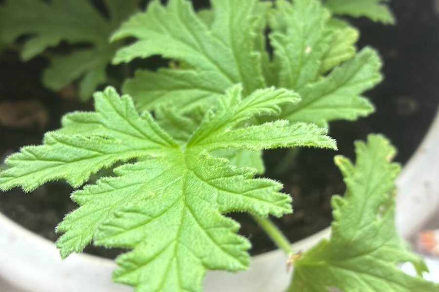 Säljer en stickling av doftpelargon. Plantera den i en kruka med jord och se den växa.