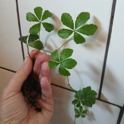 En stickling med rötter redo att planteras i jord.