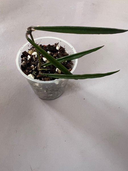 Hoya acicularis, rotad stickling som växer på två tillväxtpunkter. Planterad i en blandning av kokosfiber, perlit och orkidébark.