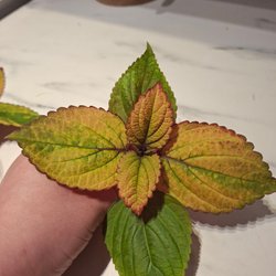 Färgen på bladen påverkas av ljuset så färgerna kan se annorlunda ut efter leveransen men kommer få tillbaka sina färger efter att den fått mer ljus, finns även risk att den kan tappa något blad.