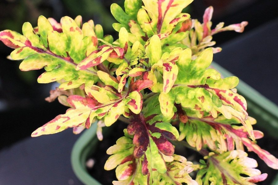 Färgen på bladen påverkas av ljuset så färgerna kan se annorlunda ut efter leveransen men kommer få tillbaka sina färger efter att den fått mer ljus, finns även risk att den kan tappa något blad.