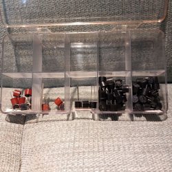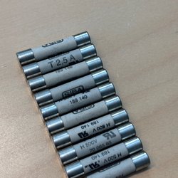 Parti med säkringar av olika typer och storlekar, inklusive 10/500, 16/500, 10A 500V, 16A, och 5x16A. 66st
