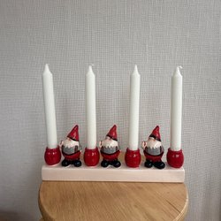 En söt adventsljusstake med tomtar på sidorna. Perfekt för att skapa julstämning i hemmet.