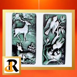 Handgjord väggprydnad föreställande en tupp. Tillverkad i trä och ull.