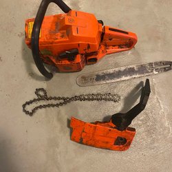 Husqvarna 45 motorsåg säljes. Saknas skruvar till kåpa enligt bild. Kan saknas någon mer skruv. Jag vet ingenting om den då det är från dödsbo.
