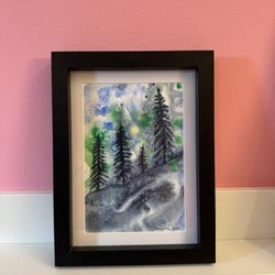 Det här tavlan är målad med akvarellfärger på ett strukturerat bomullspapper avsett för akvarellfärg.