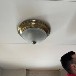 Smått repig upptill men inget som syns när lampan sitter i taket.