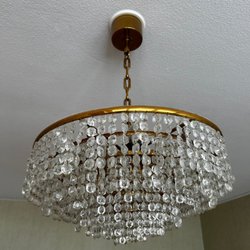 En taklampa i mässingsfärg. Lampan är ca 43cm lång.