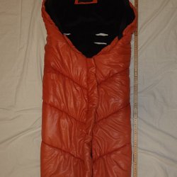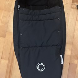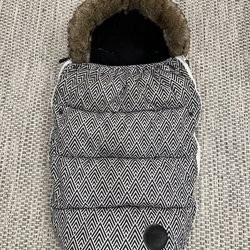Säljer en åkpåse i svart och beige färg.
