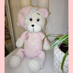 Noggrant virkad mjuk o go nallebjörn i pyjamas och nattmössa ca 45 c