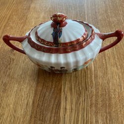 Elegant och vacker porslinsask med lock, koboltblå & guld färger