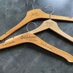 Två dalahästar i trä. Den större hästen är 15 cm hög och den mindre hästen är 7 cm hög.