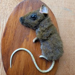 En snok modellerad och sedan målad med akrylfärg. Delar av den är lackade. Sedan är den fastsatt på en träplatta som jag betsat och lackat. Under snoken sitter en lapp med artnamnet: "Natrix natrix".