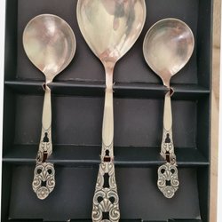 Bestickset med kniv märkt Stahl-Bronze och en gaffel. Det finns även en dekorativ kniv med texten Istanbul. Se alla bilder.