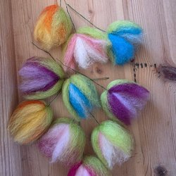 Tidlösa ullblommor med liten najtråd Passar tex påskris, dekoration, vas eller present.